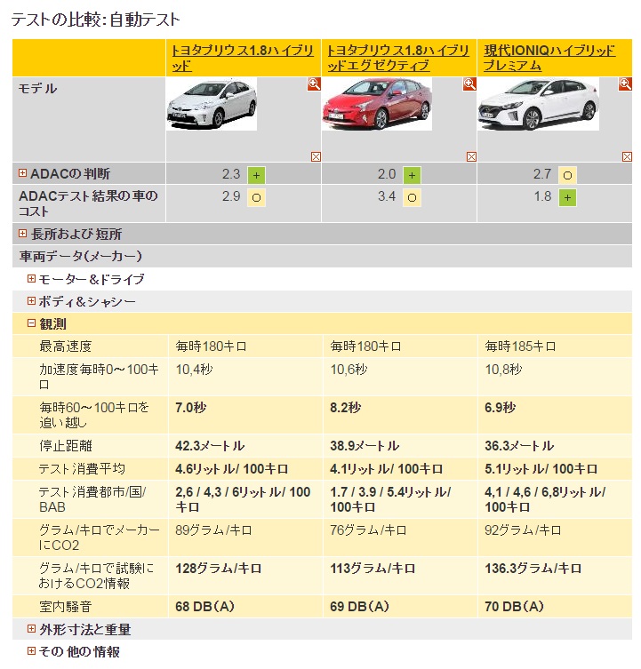 ADACのテスト結果でも、Ioniqが現行Priusに完敗していますね。