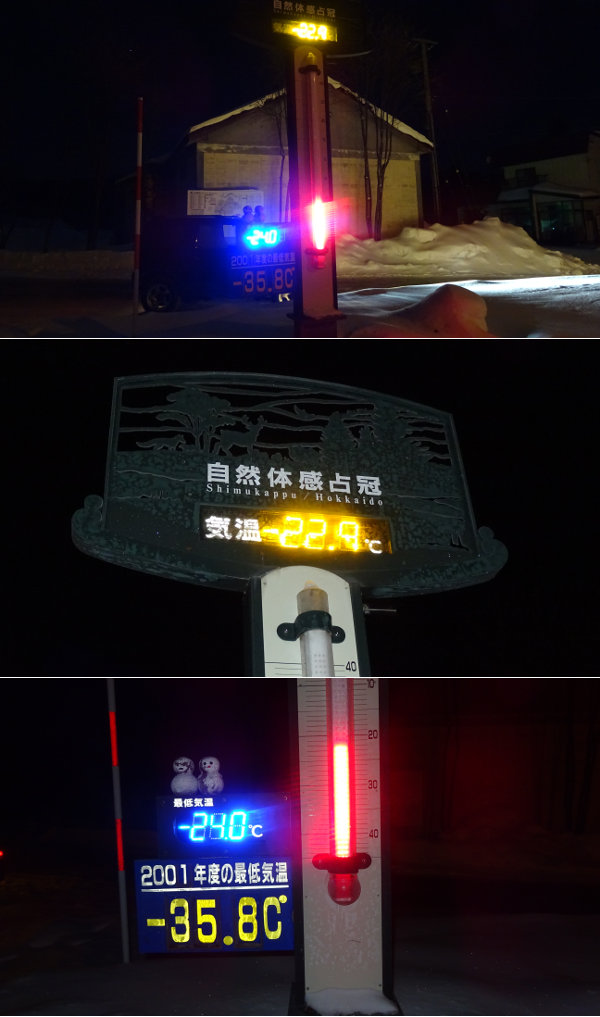 再びやって来た占冠の道の駅。20時半ではまだ-19℃。前の晩より