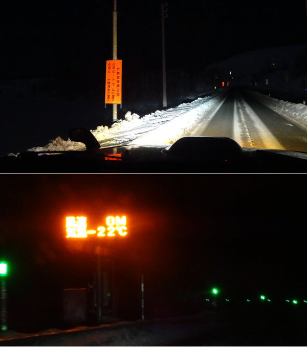 帯広の街を通過したのは3時頃。寒いのは山の中だけでなかったのね。-22℃ですか。
