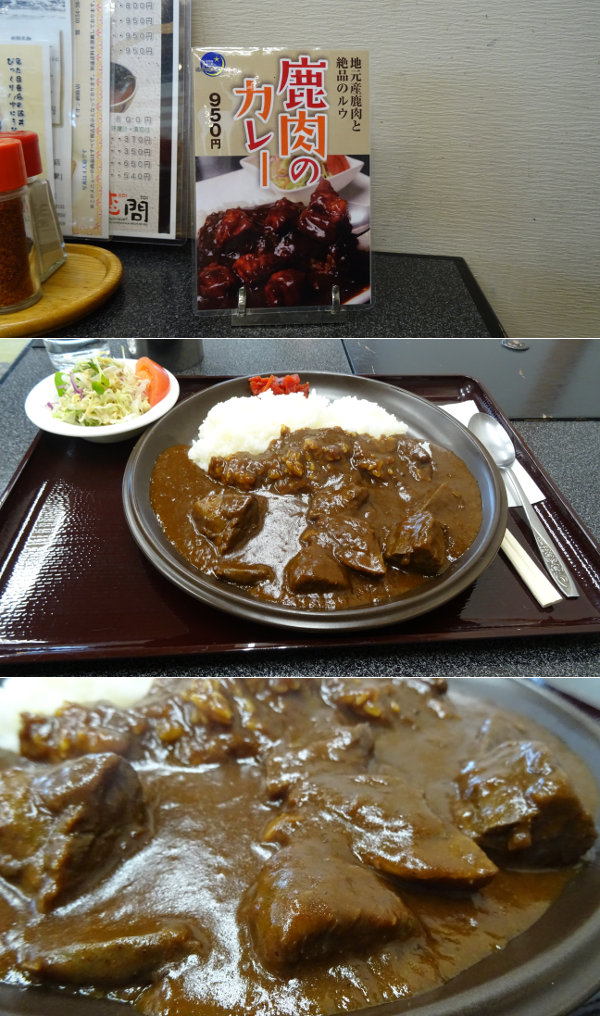 鹿肉のカレー。今流行りのジビエってやつ?ちょっと肉が固かったかな。