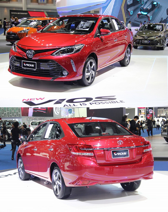 実はバンコクモーターショーは、2013年に3代目ヴィオスがワールドプレミアされた場所。そんなヴィオスのタイ仕様が中国仕様に続いてマイナーチェンジを受け、新型がトヨタブースに並んでいる。