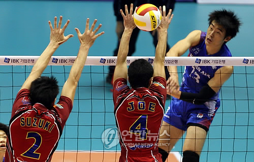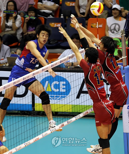 사직체육관서 열린 2009 부산 IBK기업은행 국제배구대회 남자부 A조 3차전 산토리와 경기서 세트스코어 3-0(31-29, 25-20, 25-20)으로 승리했다.