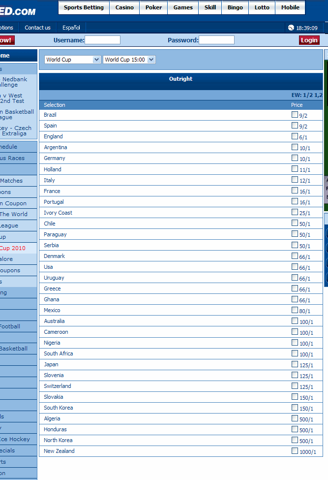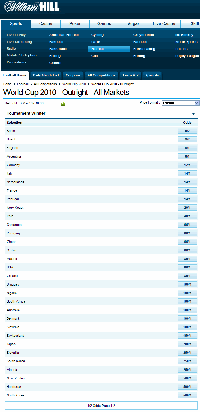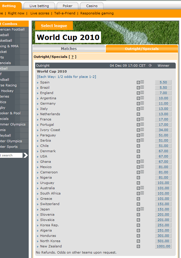 ワールドカップの優勝オッズ zainichidayo 2009-12-03 7825 0