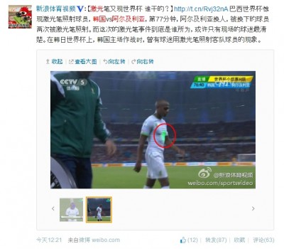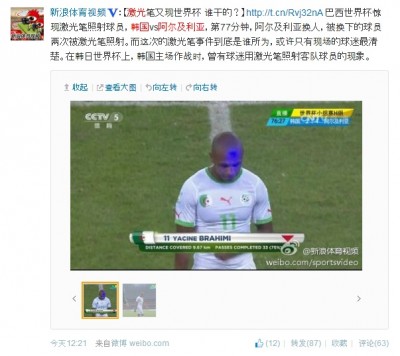 2014年6月23日、ブラジルワールドカップ(W杯)の韓国対アルジェリアの試合で、アルジェリアの選手に向けてレーザーポインターが照射されたことが問題となっている。