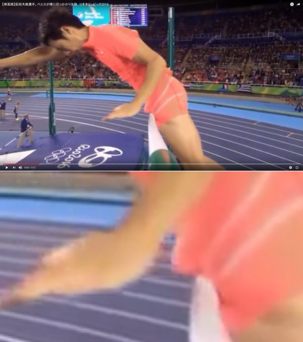 미국 신문 뉴욕・포스트등에 의하면, 문제의 영상은, 14일에 행해진 남자 장대 높이 뛰기 예선으로, 적전이 5미터 30센치에 도전했을 때의 것.옆으로부터 촬영한 슬로 모션 영상으로, 무릎이 맞고 해 되는 바에 적전의 음부가 맞는 님 아이가 확인할 수 있다는 것이다.