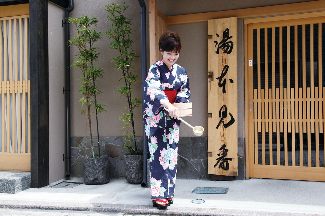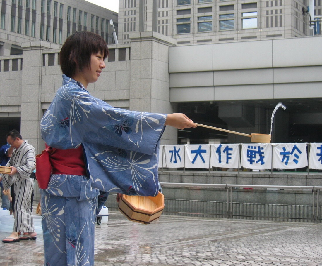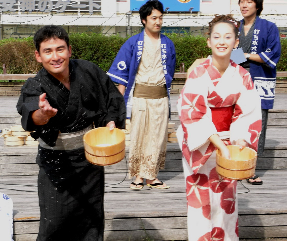 ★유카타 모습으로 물을 뿌림을 짊어지는~♪^