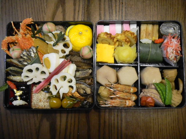 お節(osechi)料理は、日本の家庭で、伝統的に、正月に食べられている料理で、正月に、主婦が、家事から開放される様にと?、また、正月には、多くの商店が休みとなる為(現在は、マートに関しては、正月でも営業している店が多いですが)、保存が効く料理が中心となっています(もっとも、お節(osechi)料理は、ほとんどが、お正月だけ食べる料理と言う訳では無く、お正月以外も、食べられている料理です)。昔は、お節(osechi)料理は、家庭の主婦が作るのが主流でしたが、お節(osechi)料理は、作るのに手間が、かかるので、女性の社会進出が進み、専業主婦の割合が減るにつれて?、市販の、お節(osechi)料理が、popularとなって来ました。市販の、お節(osechi)料理は、一般的に、内容に比べて、値段が割高ですが、これは、作る手間(時間)の値段だと(時間を金で買うと)、考えると良いのかもしれません。。。昔は、お節(osechi)料理は、当然、日本料理でしたが、現在は、高級日本料理屋以外(例えばフランス料理レストランや中国料理レストラン)でも、お節(osechi)料理を、メニュー(menu)に加えて、予約注文を受け付けている所が有ります。また、比較的チープな(安い)、マート等の、お節(osechi)料理も、かなり一般的となっています。