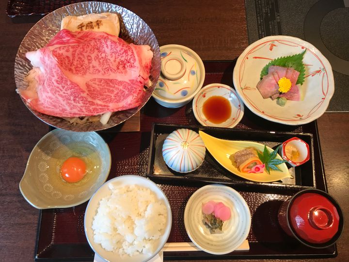 메이신 고속도로 히코네 인터로부터 15분정도로 있다 오오미소를 맛볼 수 있는 가게입니다.히코네성에 가깝기 때문에 관광하는 김에 대단히 편리.질감이 높고 정취 있다 화의 저매가 멋집니다.점내는 침착한 화공간에서 다다미를 깐 테이블석에, 다다미방석이 있어요.또 개인실도 있으므로 그룹으로의 이용도 추천.이번 오징어의 것은 11시 반부터의 런치 타임.런치라도 진지나 모임 뿐만이 아니라 스끼야끼나 샤브샤브도 맛볼 수 있습니다.로스 스테이크선이나 스끼야끼선도 있습니다만, 생다랑어 덮밥 진지 2880엔을 주문.생다랑어 덮밥이라고 해도 마구로는 아니고 오오미소의 구조입니다.와 국, 사라다 첨부.사발의 양은 많지 않습니다가 육질은 훌륭하다.사치스러운 맛의 오오미소를 만끽할 수 있었습니다.