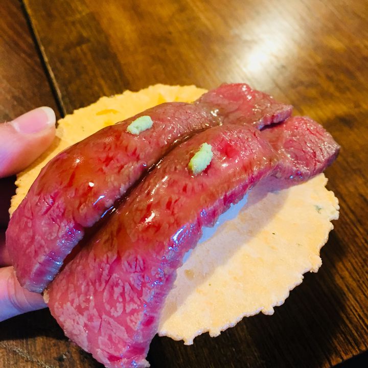 営業は昼間だけで、飛騨牛の握りが有名です。私は飛騨牛を使った「うっしだ丼」というのを食べました。飛騨牛のローストビーフと温玉がご飯の上にのっかっているもので、とても美味しかったです。それから、お蕎麦やこちらのお店オリジナルラーメンも美味しいです。飛騨高山は中華そばと呼ばれる、ちじれ麺の醤油ベースのラーメンも有名で、お店によりちょっと醬油辛いところもあるのですが、こちらのラーメンはそういった事がなく、食べやすいです。また、地元のお酒もいくつか取り扱っていました。