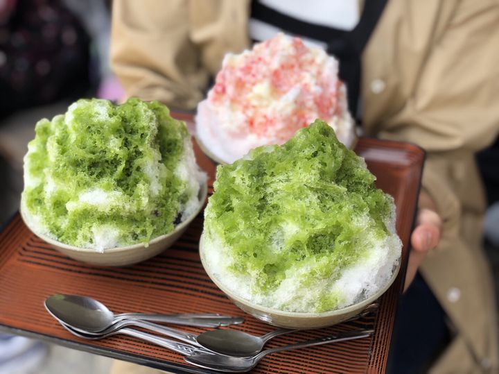 有名な伊勢神宮へ向かう参道の途中、おかげ横丁前にあの赤福の本店があります。赤福は現在では大阪などのサービスエリアでも買えるほど販路を拡大していますが、ここでは昔ながらの休憩所を兼ねたイートインスペースがあり、中でお茶と赤福を頂けます。夏には赤福氷、冬は赤福ぜんざいなど、店舗でしか食べることができない季節限定メニューがあり、常に多くのお客さんでいっぱいです。毎月1日には一日餅というその日限定のお餅も発売されるので、12種類のお餅を食べ比べるのも楽しいと思います。土日や正月シーズンは大変込み合い行列ができるので、朝早い時間、夕方など時間をずらして参拝し、赤福に立ち寄るのがおススメです。