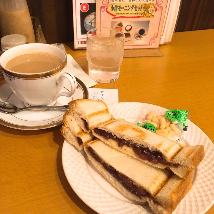 ここの売りは、店前黄色い看板通り「一日」モーニングセットを注文できることです。「モーニング」というのは一種愛あるのサービス名称ですね。内容としては小倉トーストや玉子、ホットドッグなど、ごく普通のモーニングです。また、お昼お腹いっぱい食べたい方は、一般的な定食メニューもお手頃価格で注文できます。