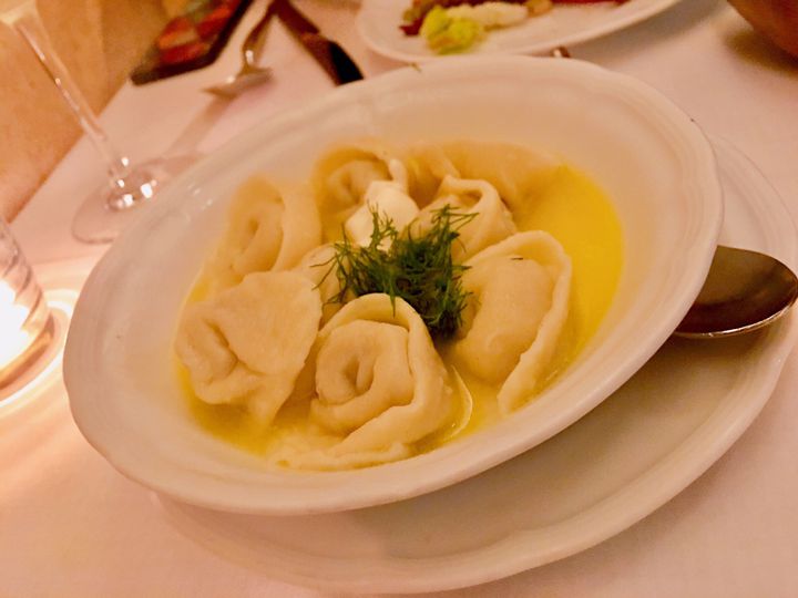 西武新宿から数分歩いたところに、まるでアトラクションの入り口のようなかわいい木の扉を開けて地下一階のお店です。店員さんは、ロシア美女ロシア美青年で美しかったです、、、。入店したのが、8時半前でピロシキとペリメニはもうありませんでした、、、。代わりに勧められた、マリノーブナヤ・ケタをいただきましたが、とても美味しい!サワークリームにマリネがよく合う!知れてよかったです!ボルシチもローストキャベツも絶品!!ロシア行きたくなりました!