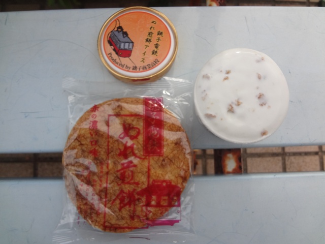 ぬれ煎餅は、銚子電鉄の一日乗車券である「弧廻手形」を、犬吠駅に持参して、無料で貰ったものです。
