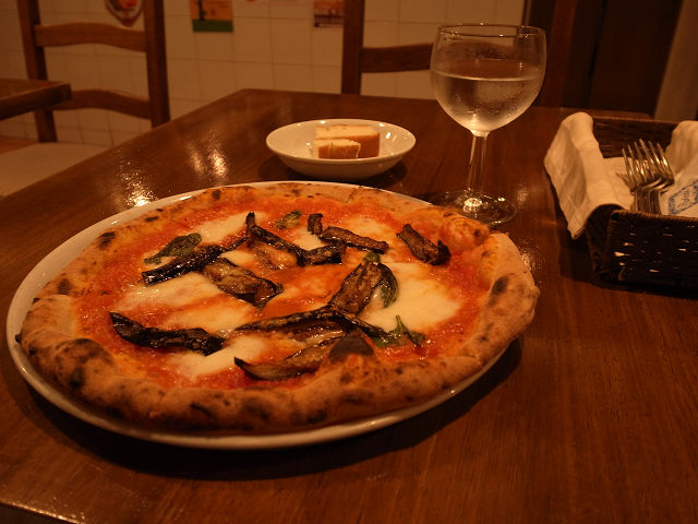 피자는 나스, 못트아레라, 바질, 토마토 소스가 오른 메란자네.
