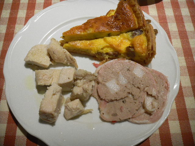 写真以下4枚。このレストランで食べた、この日の昼食。このレストランの昼食は、前菜、パン、サラダ(salad)は、バイキング(buffet)形式となっています(パスタ(pasta)、メイン(main)料理等は、出来立ての物を運んで来てくれます)。