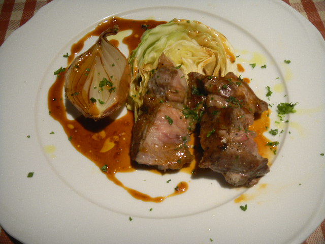 豚肉(ハーブ豚肉(ハーブ(herb)を飼料として使って育てた豚の肉))の、グリル(焼き物)。