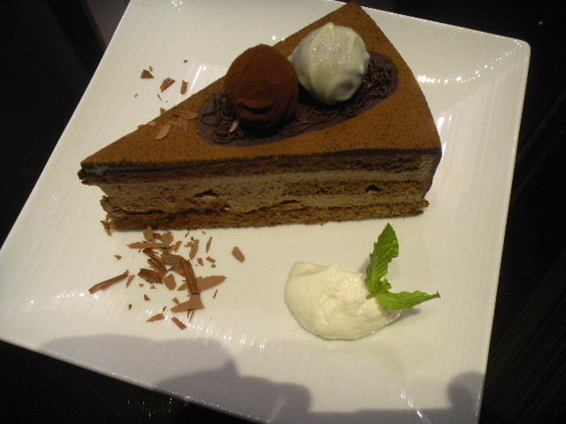 この時、彼女が、カフェ(cafe)で食べた、ケーキ(cake)。ブランデー(brandy)を使った、チョコレート系の、ケーキ(cake)。