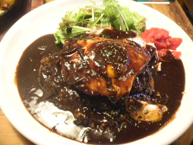 彼女が、食べた、基本的な、ハンバーグ(hamburger steak)カレー(curry)。