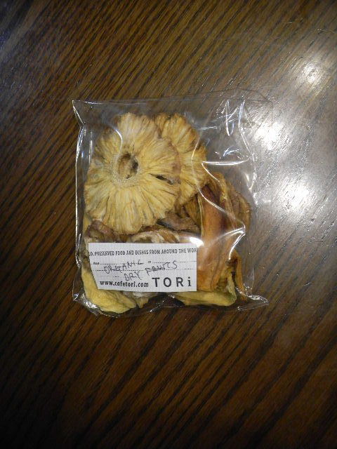 この時、渋谷(shibuya)から、我が家に歩いて帰る途中に寄って、少し立ち読みした本屋で買った、有機(organic)果物の、ドライフルーツ(dried fruit)。