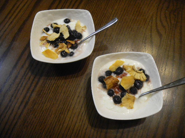 この日、渋谷(shibuya)から、我が家に帰って来て、食べた、食べ物の一つ。ヨーグルト(yogurt)。ヨーグルト(yogurt)の上に載っているのは、上のドライフルーツ(dried fruit)(渋谷(shibuya)から、我が家に帰る途中の、本屋で買った、ドライフルーツ(dried fruit))、私の、長野(nagano)県の別荘(別荘とは言っても、比較的裕福な人々が保有する様な典型的な別荘ではなく、庶民的な中古の一戸建て住宅です)の庭で取れたブルーベリー(blueberry)、薔薇の蜂蜜(honey)。