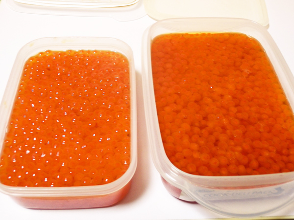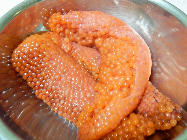 팔고 있는 것은 성숙알의 염장품을 냉동하고, 그것을 소금 빼기하는 등 간장에 담그고 있으므로, 보존은 하지만 베타 붙어 있고, 약간 쓴 맛이 나와 있거나 알의 감미가 없어져 있거나 하기 때문에.이것은 알내기 밥의 알에 가까운, 계란이 맛이 나.