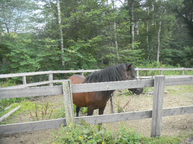 写真以下16枚。開田(kaida)高原が含まれる、木曽(kiso)area(長野(nagano)県の南西部area)は、古くから、木曽(kiso)馬の産地となっていますが、中でも、開田(kaida)高原(旧、開田(kaida)村)は、木曽(kiso)馬の里(木曽(kiso)馬の村)として知られています。木曽(kiso)馬は、日本在来種の馬の一つ(日本の、古くからの、馬の品種の一つ)です。木曽(kiso)馬の起源は、はっきりとした事は、分かっていませんが、木曽(kiso)馬は、弥生(yayoi)時代(紀元前4世紀頃から、起源後3世紀頃まで)から、古墳(kofun)時代(3世紀頃から6世紀頃)にかけて、韓国(朝鮮半島)経由で、日本に入って来た、モンゴル系の中国の馬が、長い年月をかけて、木曽(kiso)areaの冷涼な山間部の気候に適応した物とする説が、有力な様です。木曽(kiso)馬は、かつては、木曽(kiso)area(長野(nagano)県の南西部area)(かつては、日本の、馬の、主要な産地の一つであった)の全域で、飼育されていましたが(6世紀頃から飼育が始まった)、農業の近代化・現代化に伴い、激減しました(現在は、開田(kaida)高原等で、保存・維持が図られています)。