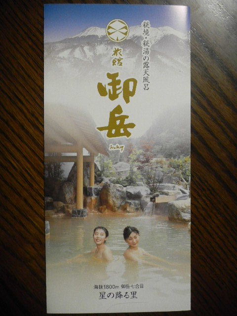 写真以下。この時は、別の温泉旅館に宿泊したのですが、参考に、前回、私達が、濁河(nigarigo)温泉で宿泊した温泉旅館(以下、この温泉旅館と書きます)のパンフレット(leaflet)。