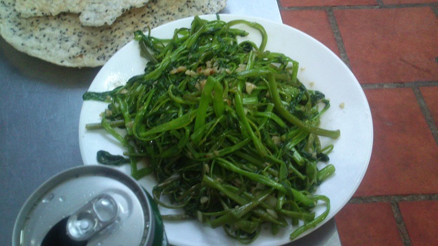 空芯菜のにんにく炒め、ハノイ風なのでしゃきしゃき感が無い^^;