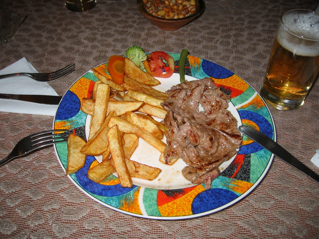 주문한 것은 미육의 소테(서양 요리)와 맥주.