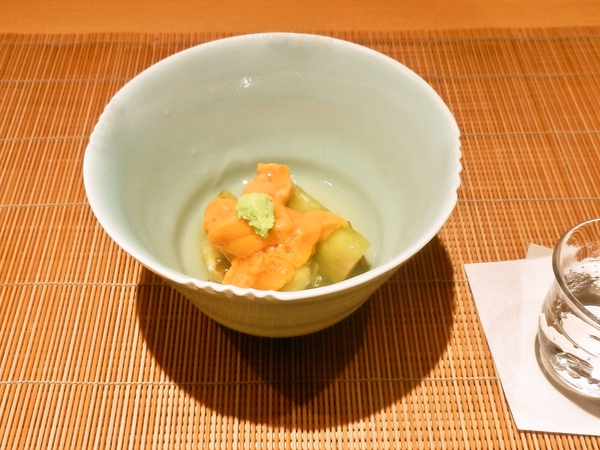 모해와 잠두콩, 숭어, 해육들이 감자구슬, 세워의 성게알젓 구이 ~