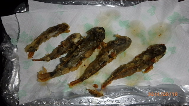 그래서 이제(벌써) 저녁이었지만 캠프장의 곧 가까이의 계류로 어 획를 감행 해, 카지카를 5마리 잡는다