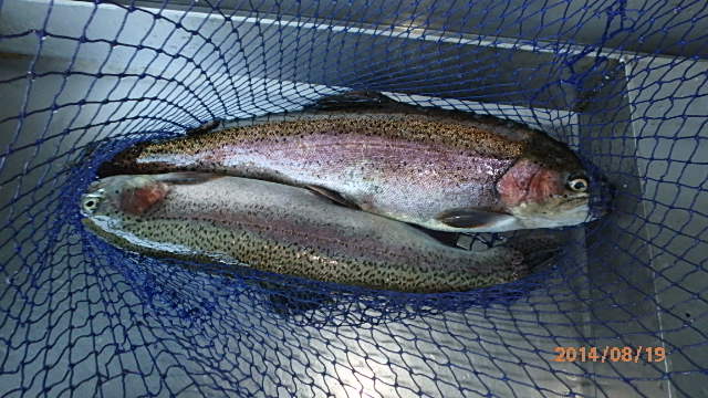 最初はバラシを連発するけど、フックサイズを変更したら50cmオーバーのニジマスを仕留め、刺身用のニジマスを確保に成功♪