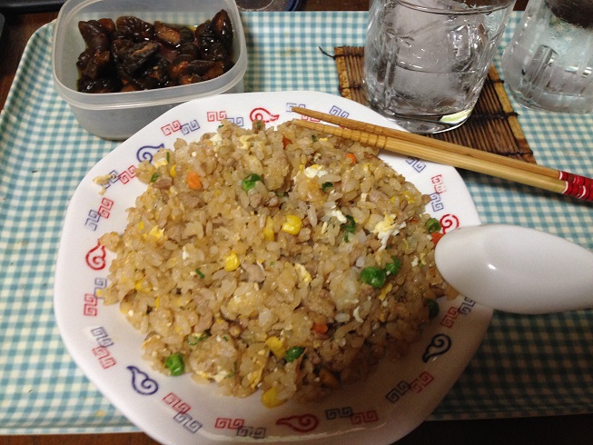 自作チャーハンと「キューちゃん」で晩酌するw(´ー`)