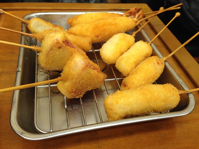 牛串・豚串・厚切りハム・イカ串・エビ串を頼むw