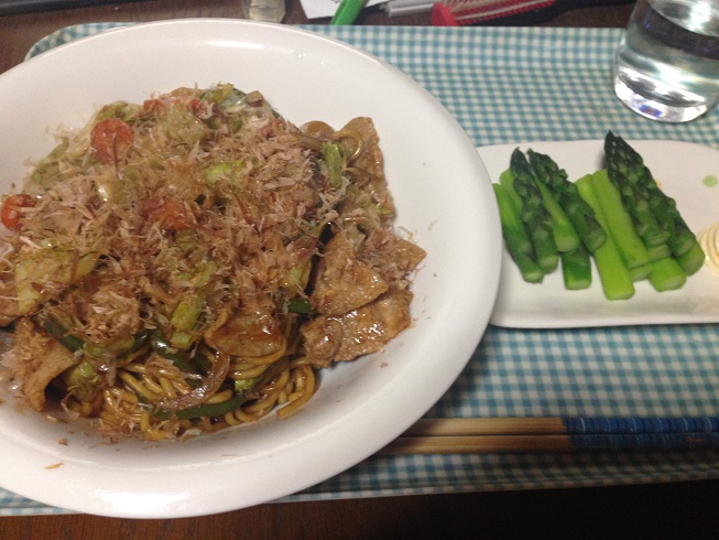 何か、申し訳なさそうな感じの茹でアスパラと共にw