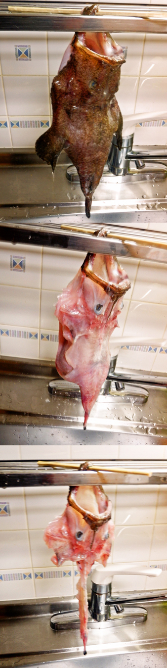 작은 아귀가 손에 들어 왔으므로 매달아 잘라에 도전해 보았다.