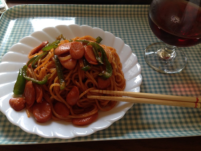 ナポリタンで赤ワインでもw(´ー`)
