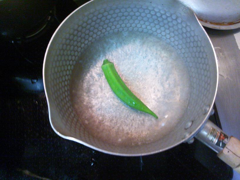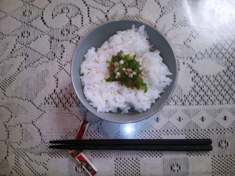 シメはあったかごはんにおくらをのせて。