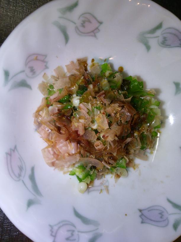 みじん切りして鰹節とお醤油をたらして混ぜました。