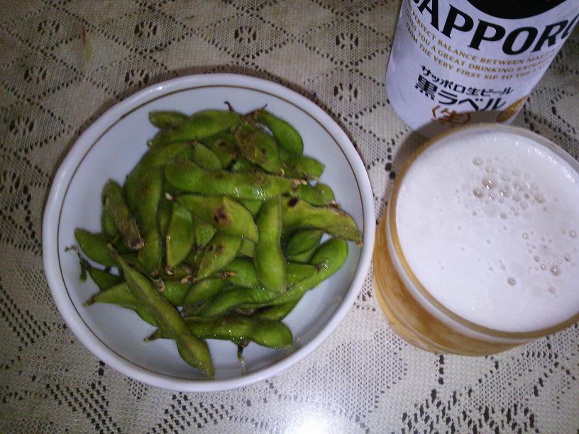 キンッキンに冷えたビールと枝豆で一杯。