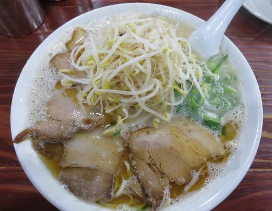 さっぱりトンコツに太麺、もやしと小ネギが付きものです。