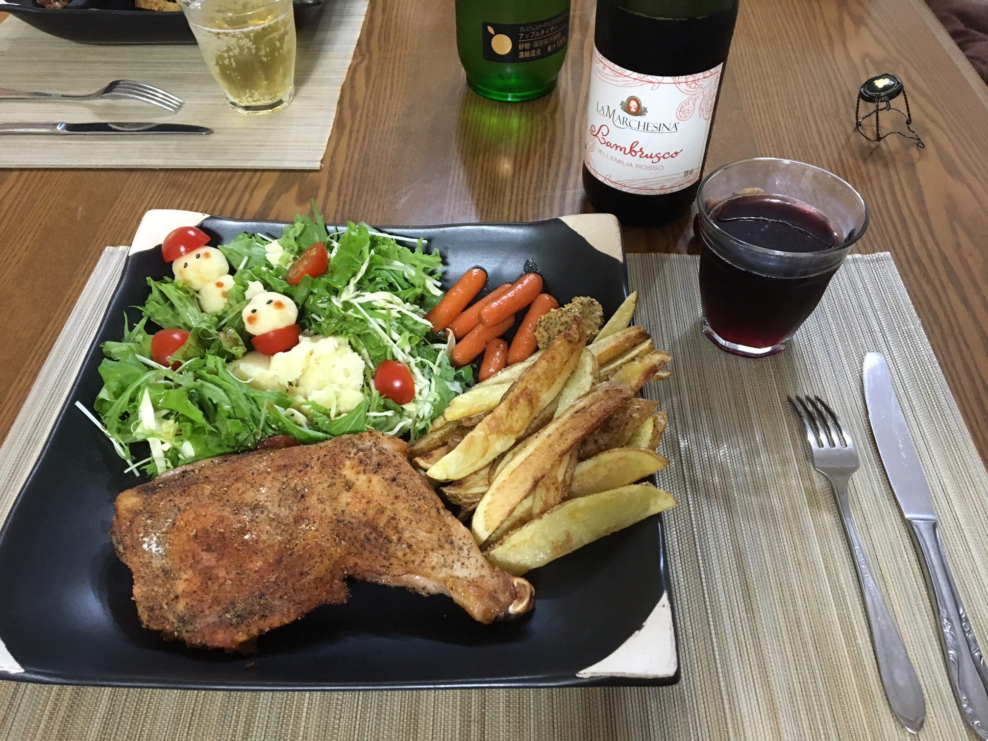 付け合わせのポテト、ニンジンのグラッセ、ポテトサラダも上手くでき満足です^^
