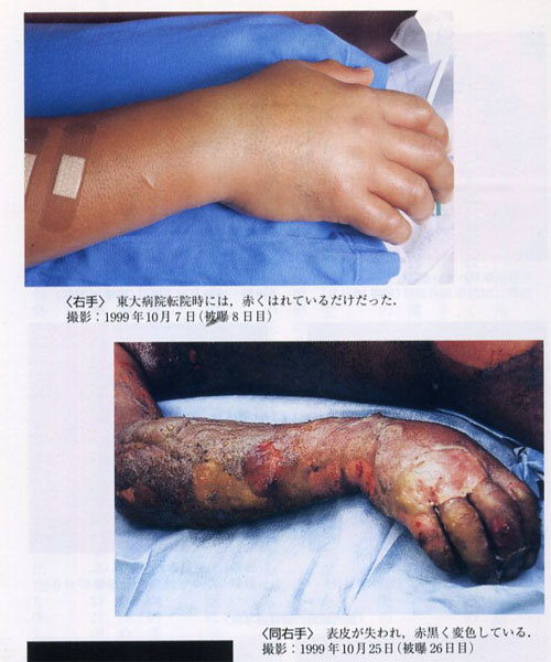 1999년 9월30일 : 임계사고로 얼굴과 양팔에 10 Sv (시버트,Sievert)의 중성자를 맞고 피폭