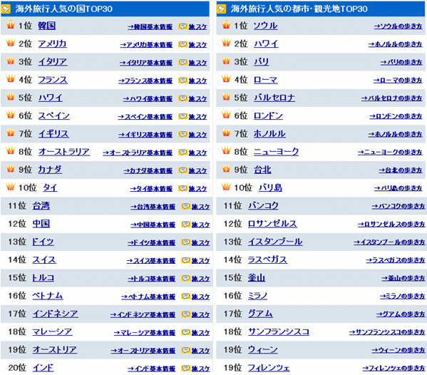 旅行したい 1位の国家と都市