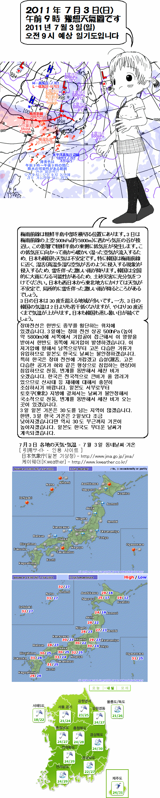 내일의 한국은, 큰 비에 대한 경계가 필요합니다.(←사실)