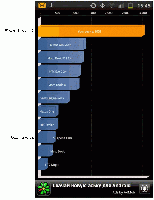 ベンチマークで 3000点の Galaxy S2