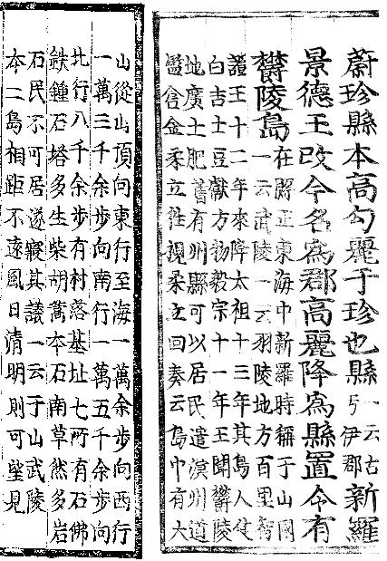 바람과 날씨가 청명하면 봉우리 머리의 수목과 산 밑의 모래톱을 역력히 볼 수 있으며 순풍이면 이틀에 갈 수 있다.」
