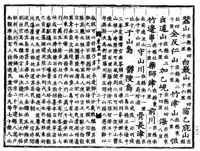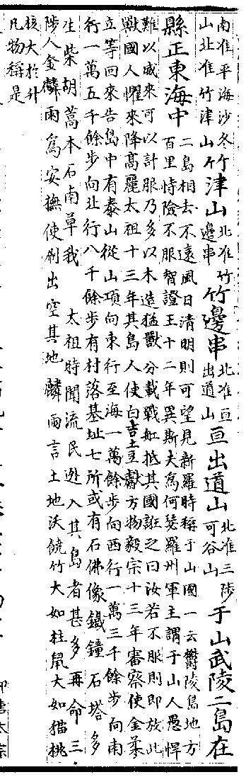 「二島在縣正東海中 三峯嶪撑空 南峯稍卑 風日淸明則 峯頭樹木 及山根沙渚 歷歷可見 風便則二日可到 」