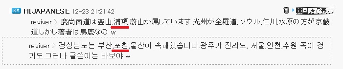 -------- 【일본인은 포항을 모르기 때문에 설명】----------