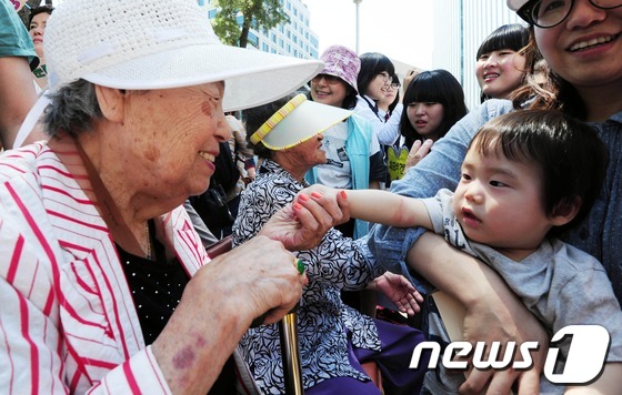 ▲ 「할머니에게 사죄 세요!」